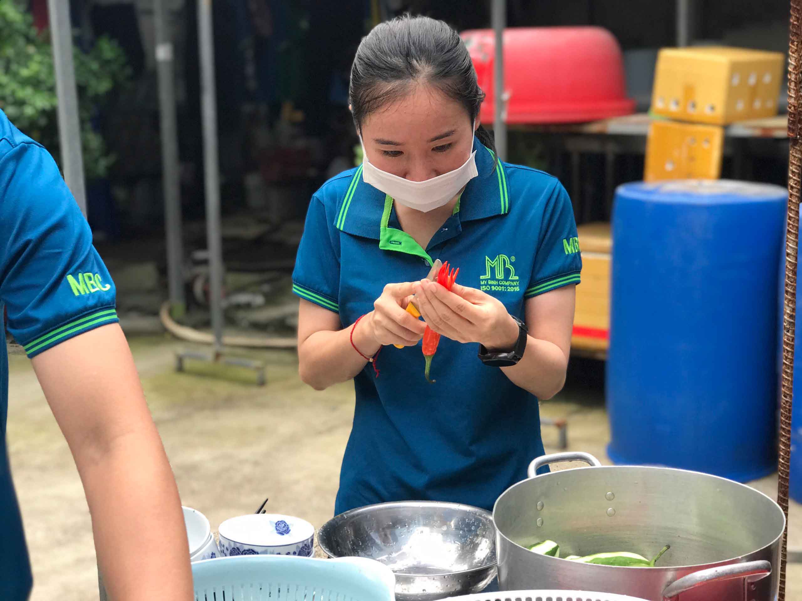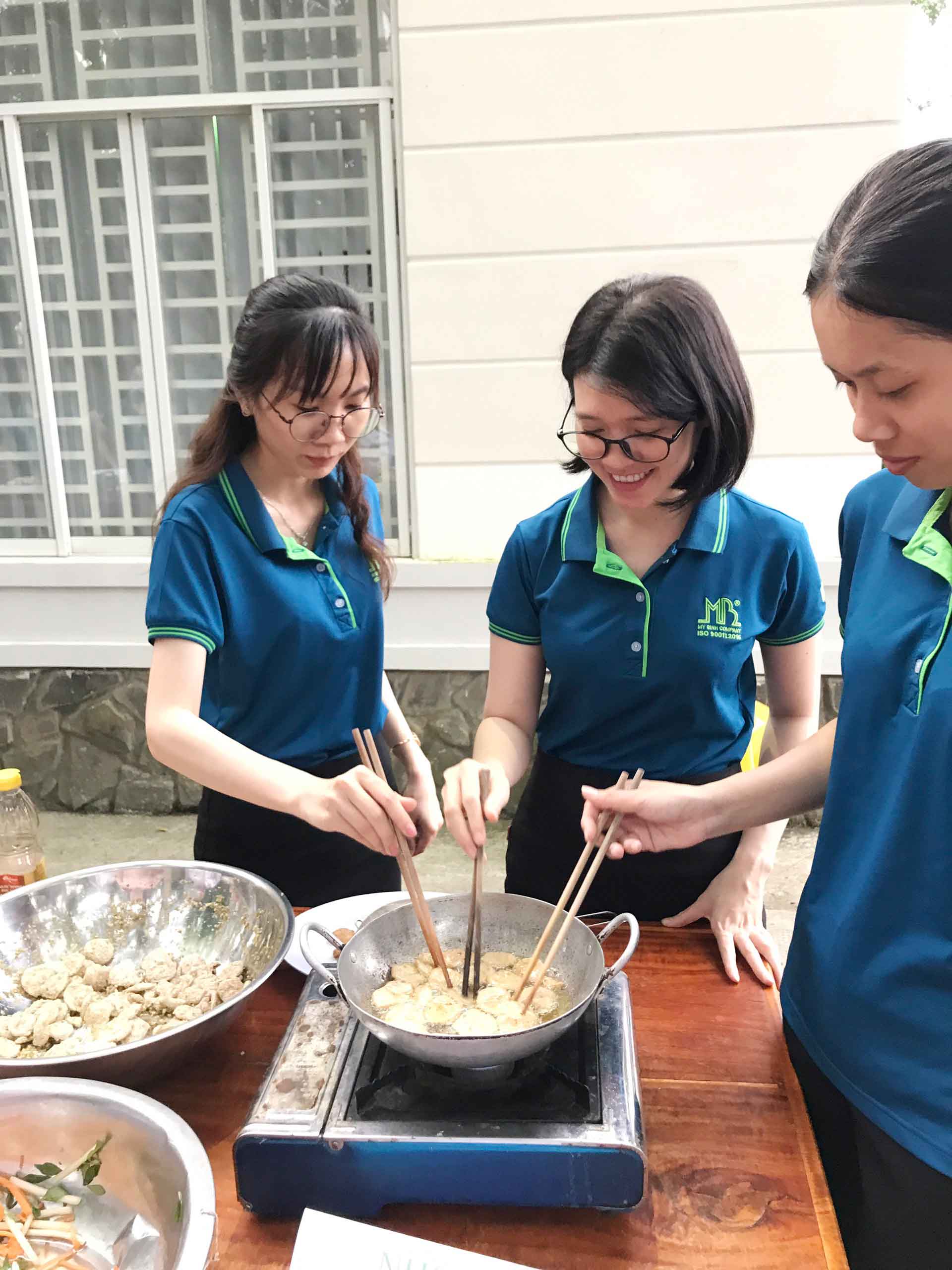 Nhân viên công ty tham gia hoạt động nấu ăn