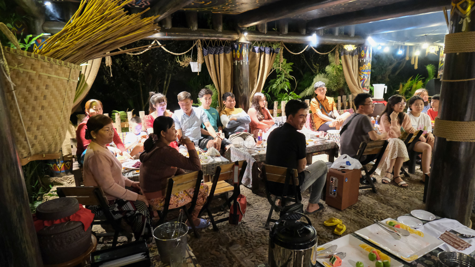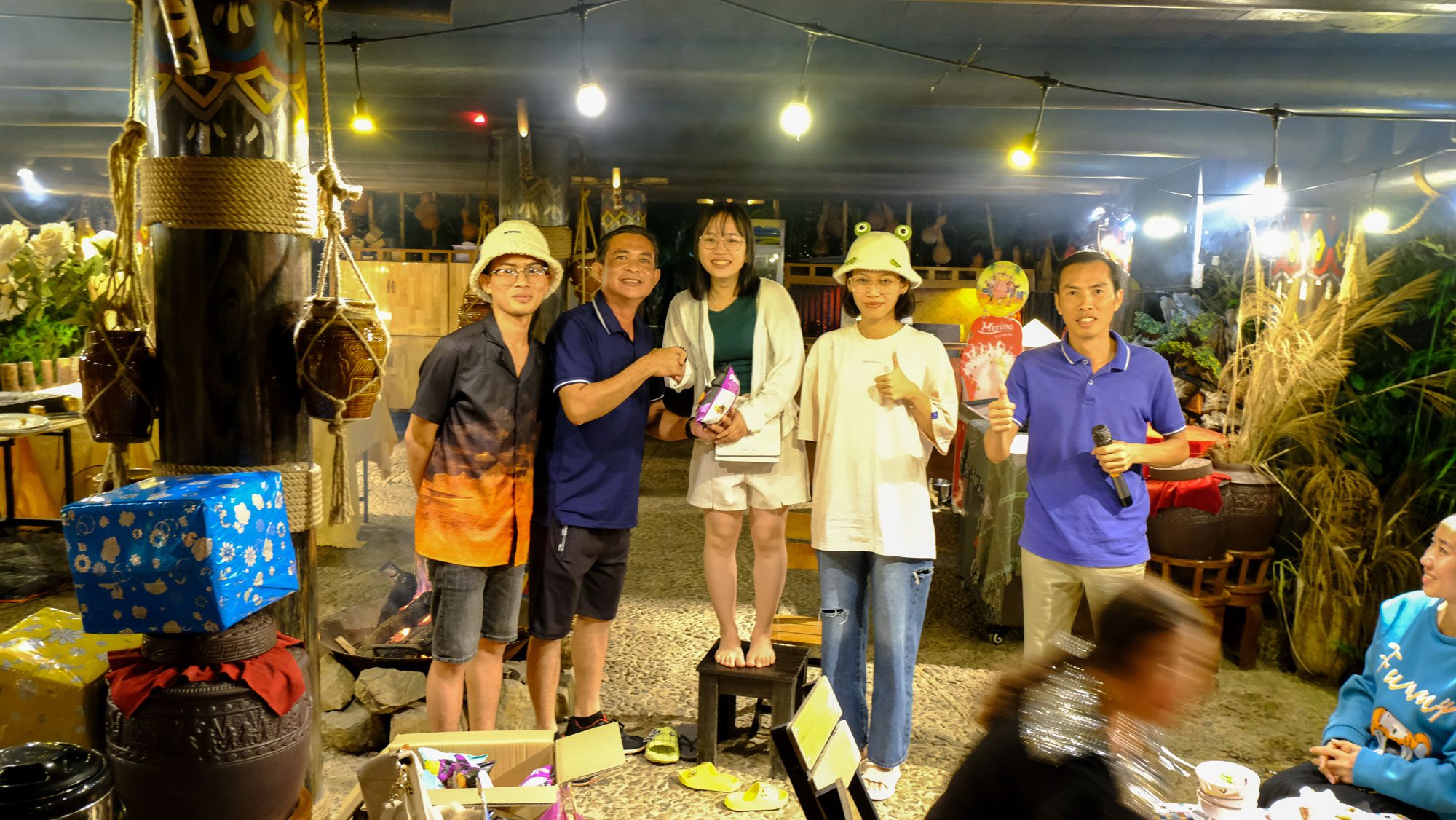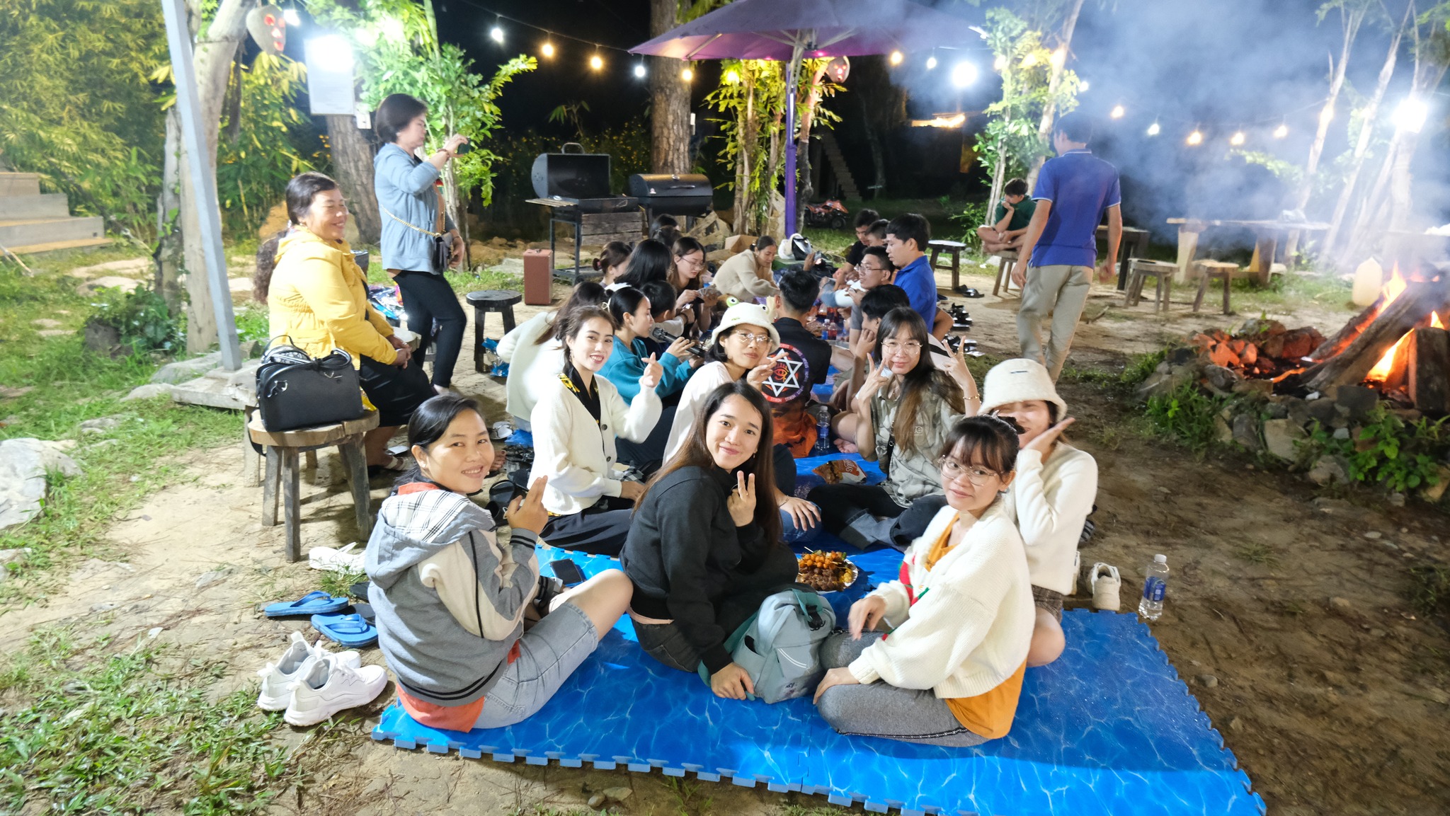 Buổi tối, đoàn chúng tôi cắm trại tại đây và tổ chức tiệc nướng, trao giải thưởng cho các hoạt động và trò chuyện thân mật, ca hát cùng với nhau, tạo sự thoải mái cho tất cả mọi người.