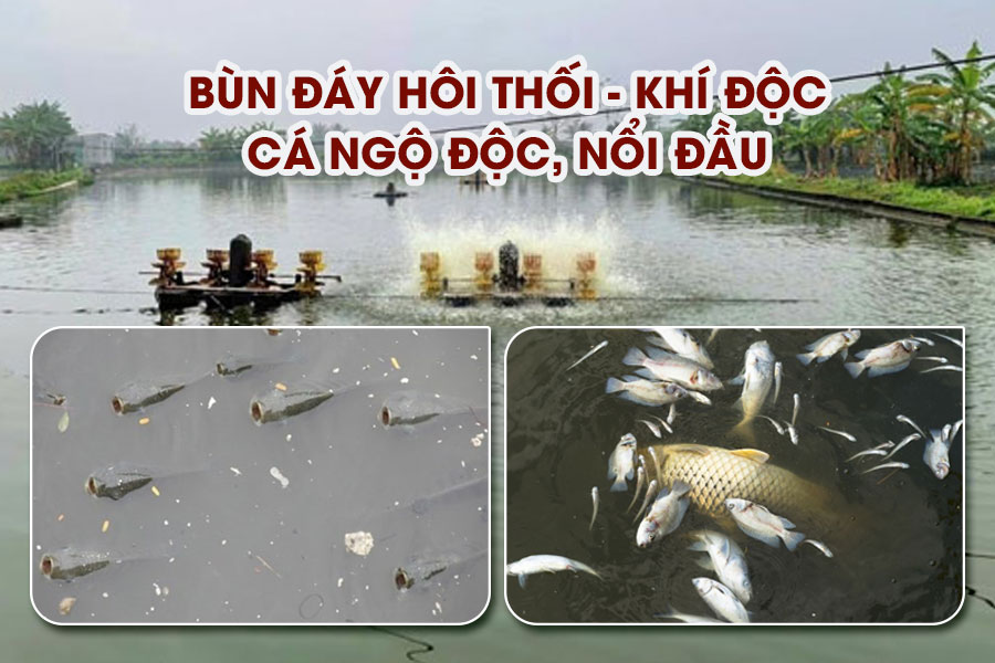 Trong quá trình nuôi cá, đặc biệt là cá trê, cá lóc, cá rô phi, ao nuôi thường tích tụ lượng lớn bùn dơ, chất thải hữu cơ chưa phân hủy, tạo điều kiện cho khí độc (NH3, NO2, H2S) phát sinh. Hậu quả là: