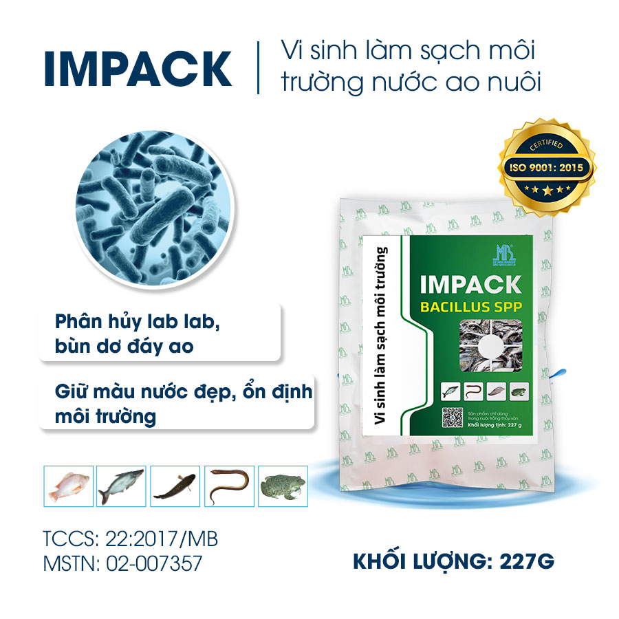 Một trong những rủi ro mang lại tổn thất nặng nề cho người nuôi cá đó là việc quản lí ao nuôi chưa tốt, không chặt chẽ dẫn đến những thiệt hại lớn cho cá nuôi. Vì vậy hiện nay việc cải thiện ao nuôi bằng vi sinh là một biện pháp vô cùng hữu hiệu cho ao nuôi cá trên thị trường hội nhập quốc tế. Hiện nay trên thị trường có rất nhiều dòng vi sinh xử lý đáy ao được bán, để lựa chọn sản phẩm vi sinh xử lý đáy ao nuôi phù hợp Công ty Mỹ Bình đã cho ra đời sản phẩm IMPACK – 1 loại men vi sinh xử lý đáy ao với công dụng phân hủy mùn bả hữu cơ, chất thải của tôm cá, cải thiện nước ao nuôi, cạnh tranh sinh học với các nhóm vi khuẩn, nấm gây hại cho cá nuôi.
