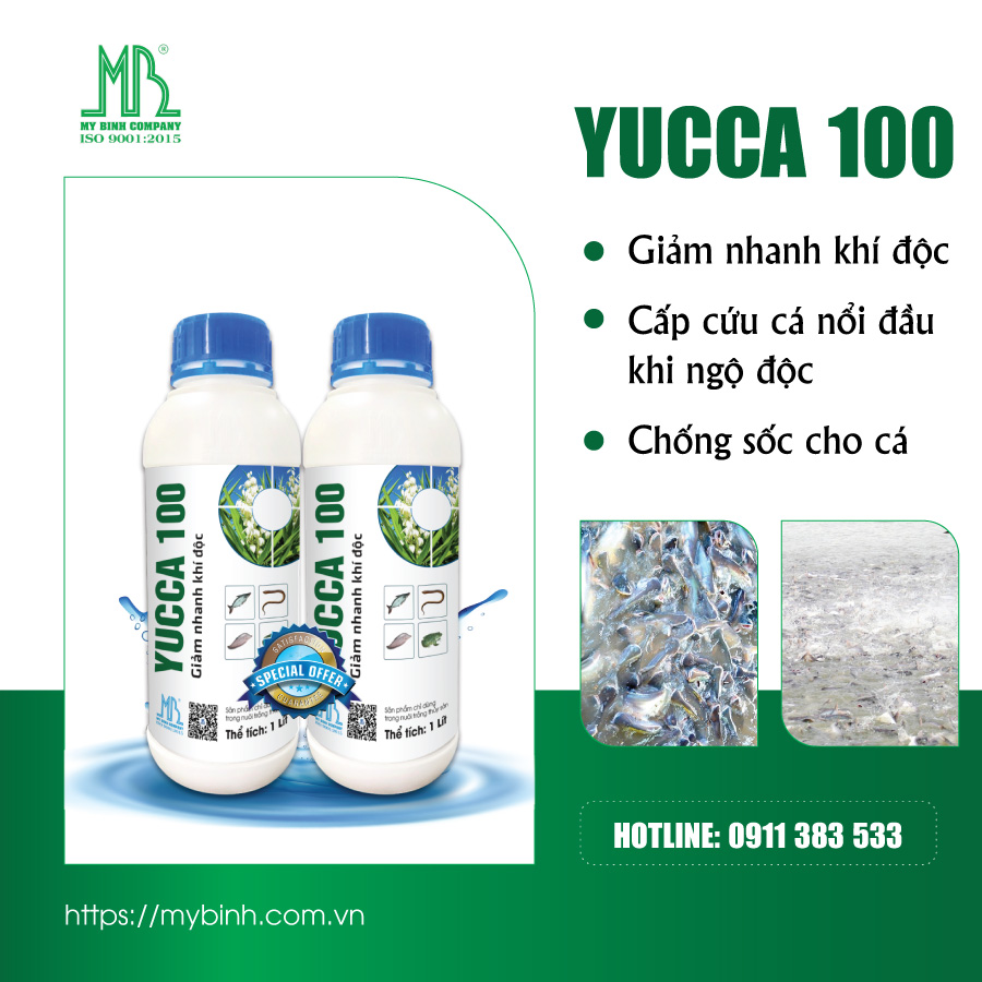 Một trong những biện pháp hữu hiệu người nuôi thường sử dụng là tạt YUCCA 100, sản phẩm YUCCA 100 được sản xuất bởi công ty Mỹ Bình với thành phần được chiết xuất từ yucca schidigera đã được sử dụng hiệu quả rộng rãi trong những trường hợp ao nuôi xuất hiện khí độc giúp chống sốc và bảo vệ cá, cấp cứu cá nổi đầu khi bị ngộ độc, chống sốc cho cá khi thời tiết thay đổi bất thường.