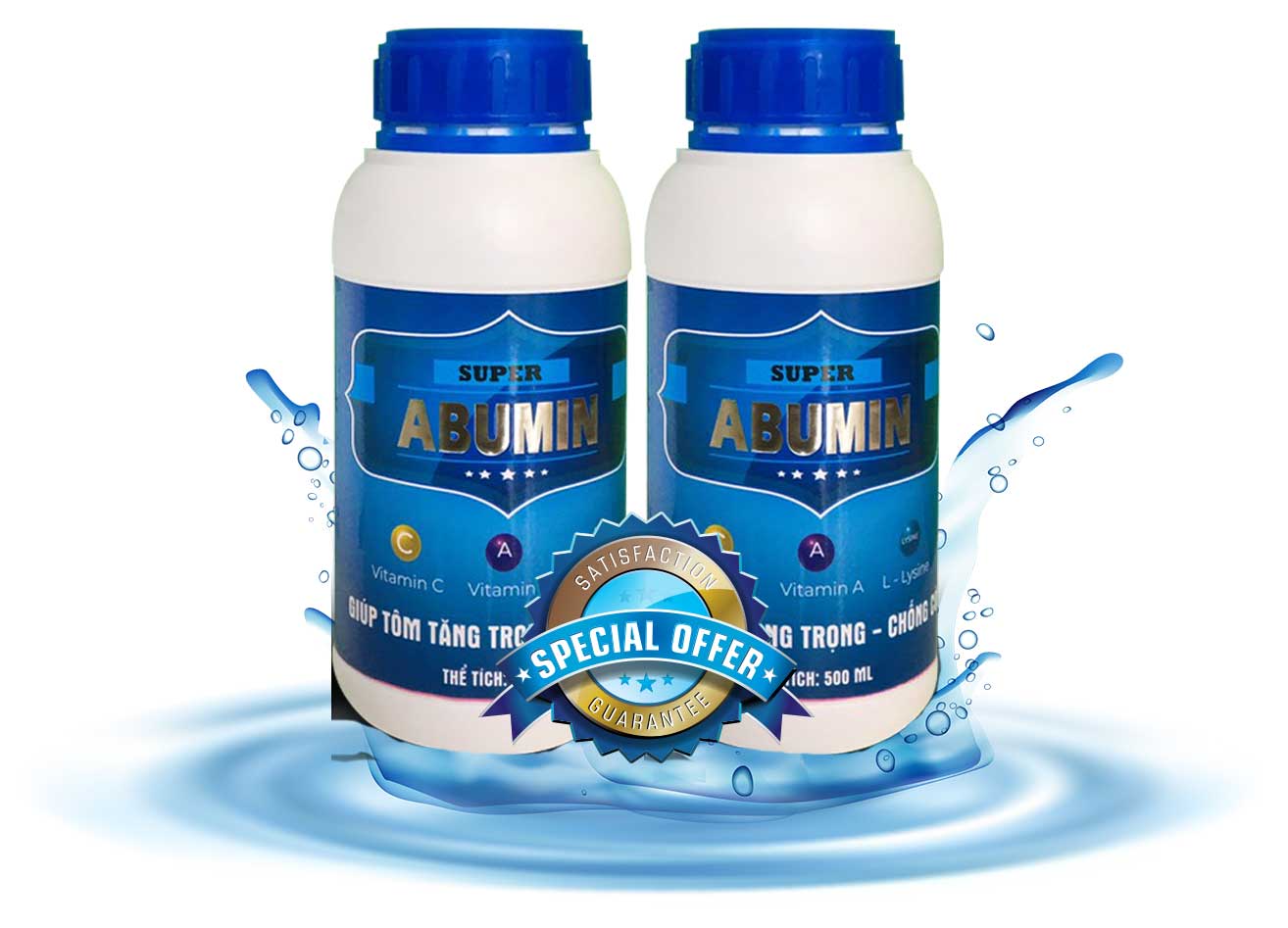 ABUMIN là sản phẩm hỗ trợ tăng trọng nhanh cho tôm vì ABUMIN sẽ giúp bổ sung đầy đủ các loại vitamin và acid amin thiết yếu giúp tôm nhanh lớn, cơ thịt săn chắc, tăng khả năng hấp thụ thức ăn giúp giảm thời gian nuôi, hạ thấp chi phí nuôi đồng thời tôm nhanh lớn, màu sắc đẹp, tăng giá thành.