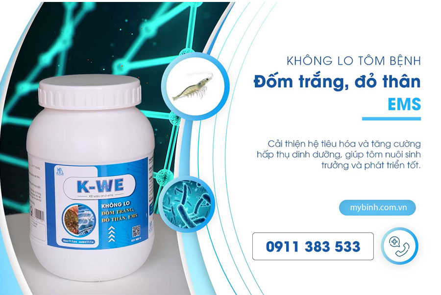 K-WE: Giải pháp tăng miễn dịch, phòng trị đốm trắng, đỏ thân, EMS, trên tôm nuôi.