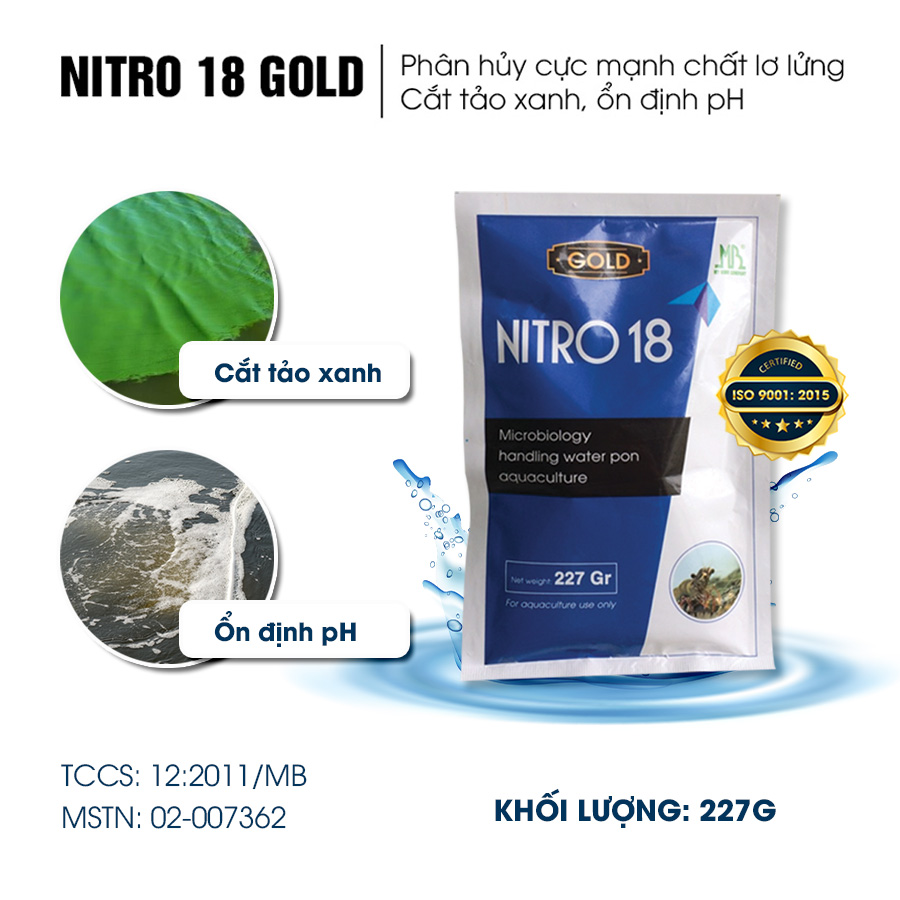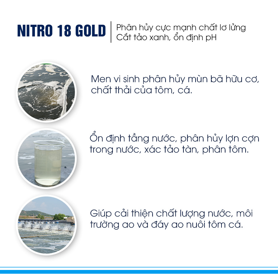 Men vi sinh làm sạch nước ao tôm Nitro 18 Gold