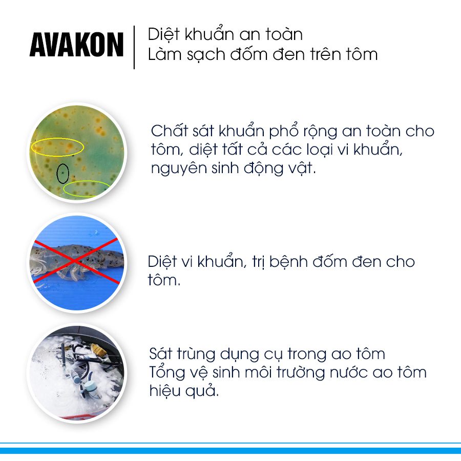 AVAKON diệt sạch vi khuẩn, trị đốm đen cho tôm