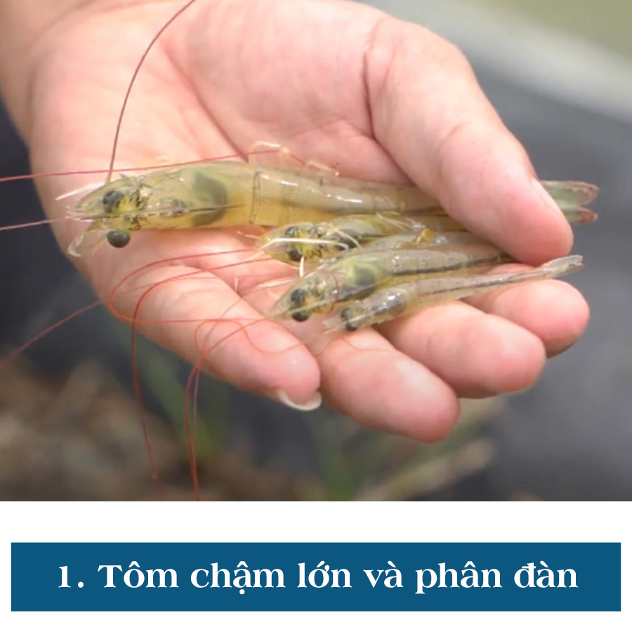 1. Tôm chậm lớn và phân đàn (lệch size) nghiêm trọng