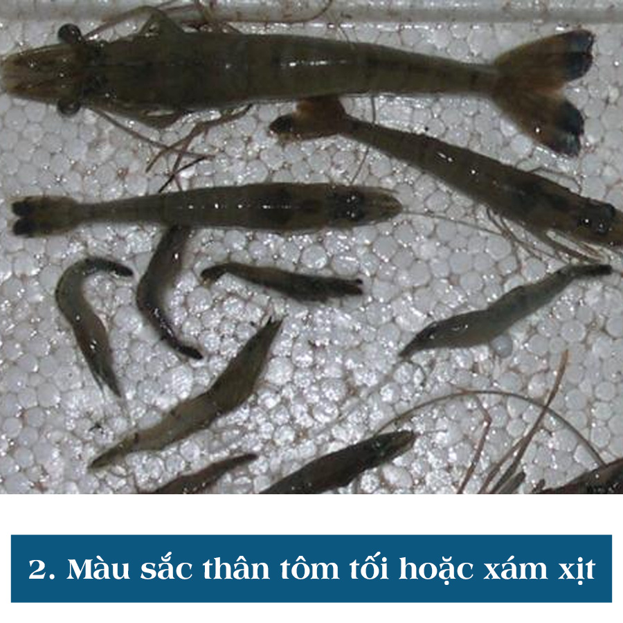 2. Màu sắc thân tôm tối hoặc xám xịt