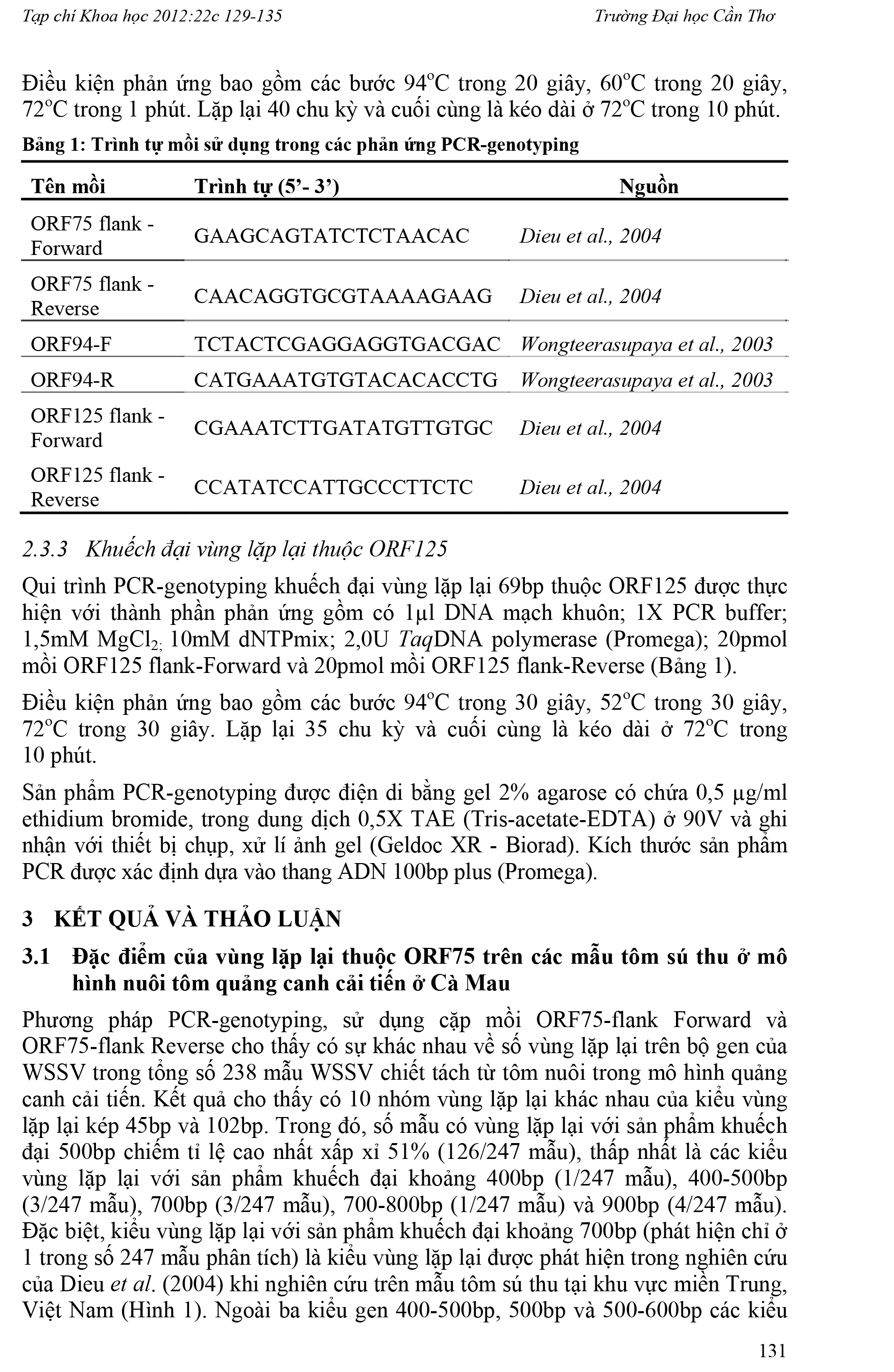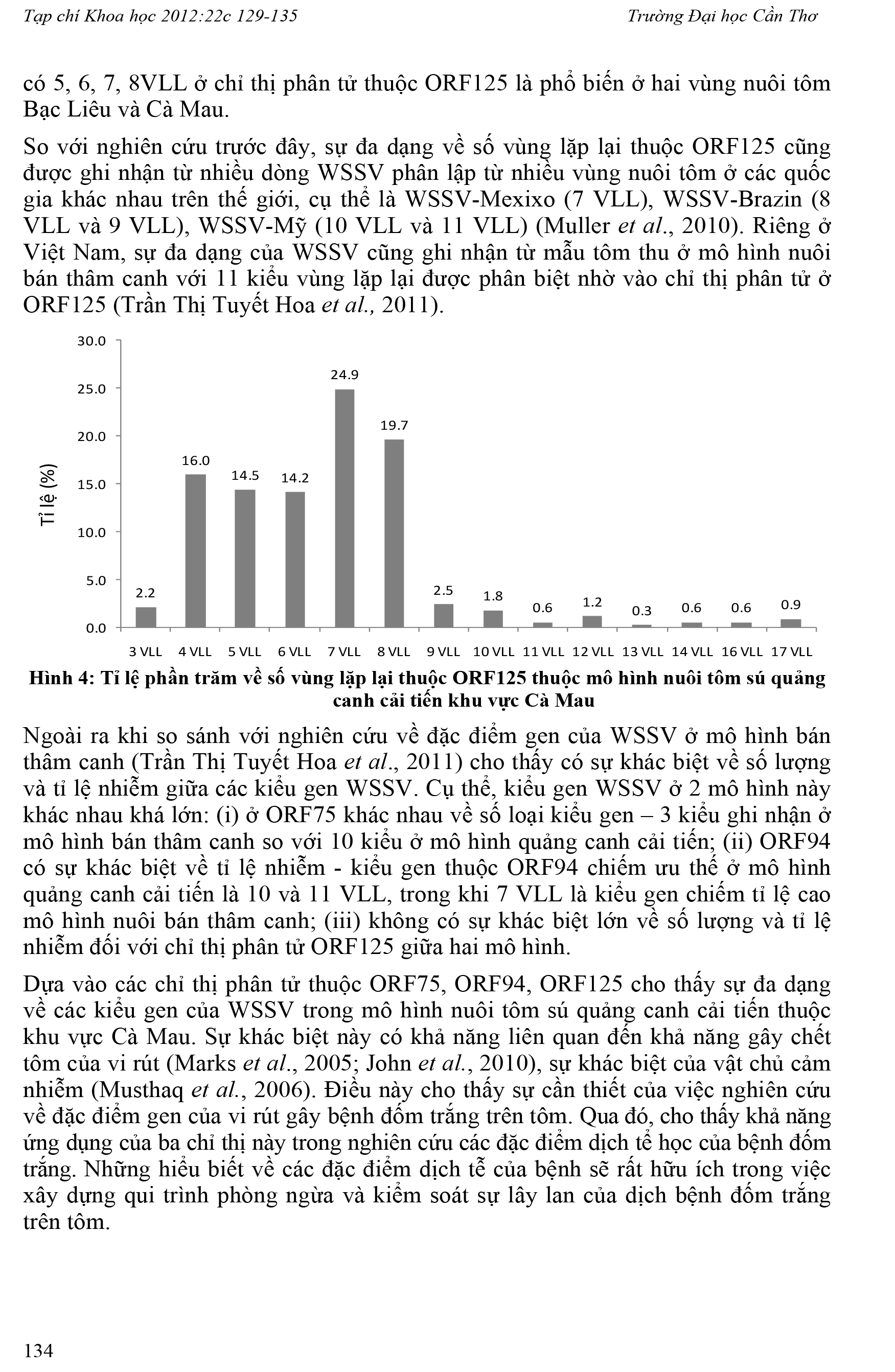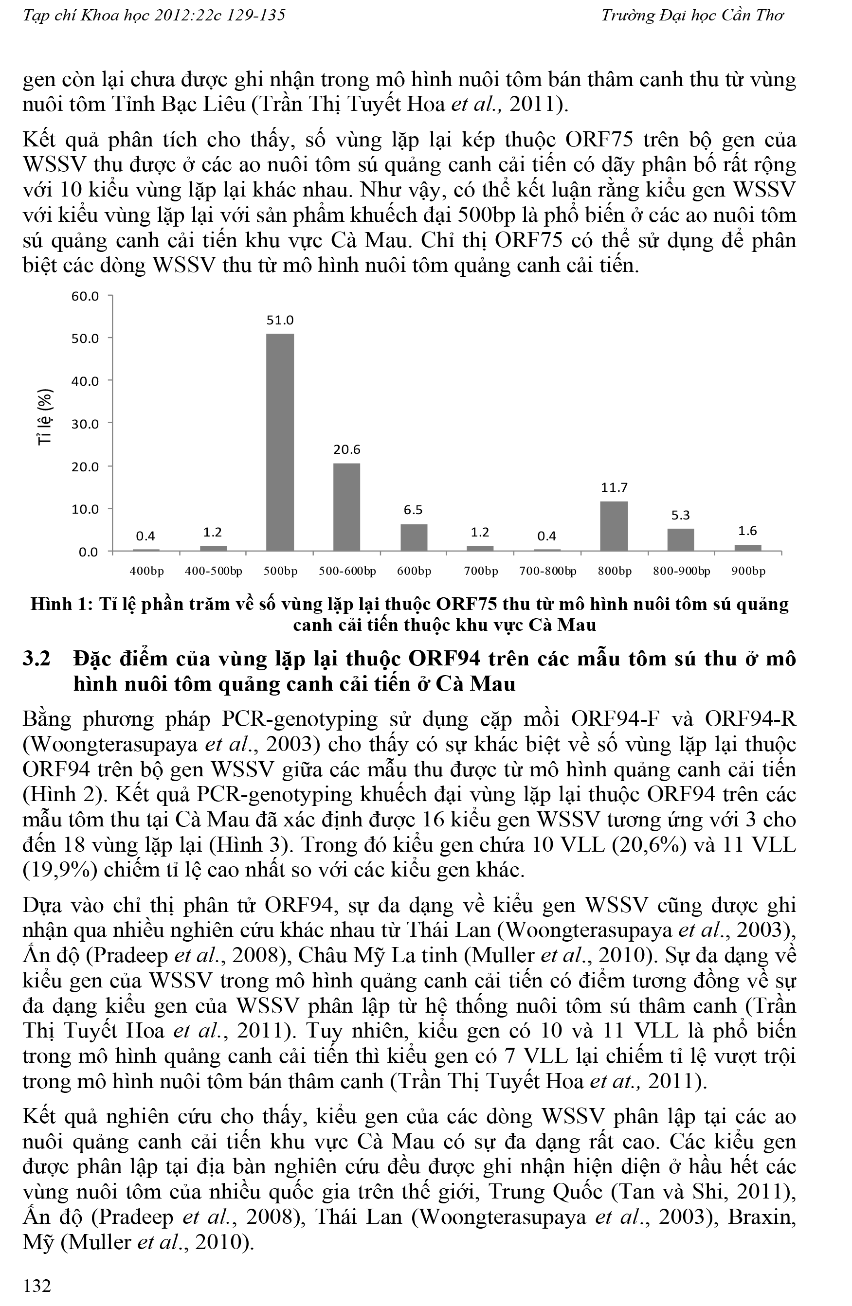 Đặc điểm gen của vi rút gây bệnh đốm trắng (White spot syndrome virus) phân lập từ hệ thống nuôi tôm sú quảng canh cải tiến
