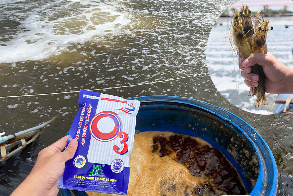 Cách gây màu nước, màu vàng trà cho ao tôm bằng men vi sinh O3 như sau: