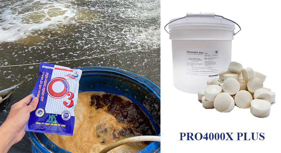 • Siphon đáy hàng ngày, sử dụng xen kẻ men vi sinh O3 và PRO4000X PLUS để làm sạch nước, phân hủy chất hữu cơ trong ao.