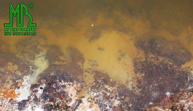 Nước ao chuyển màu vàng nâu nhạt, có váng vàng nổi trên mặt nước.