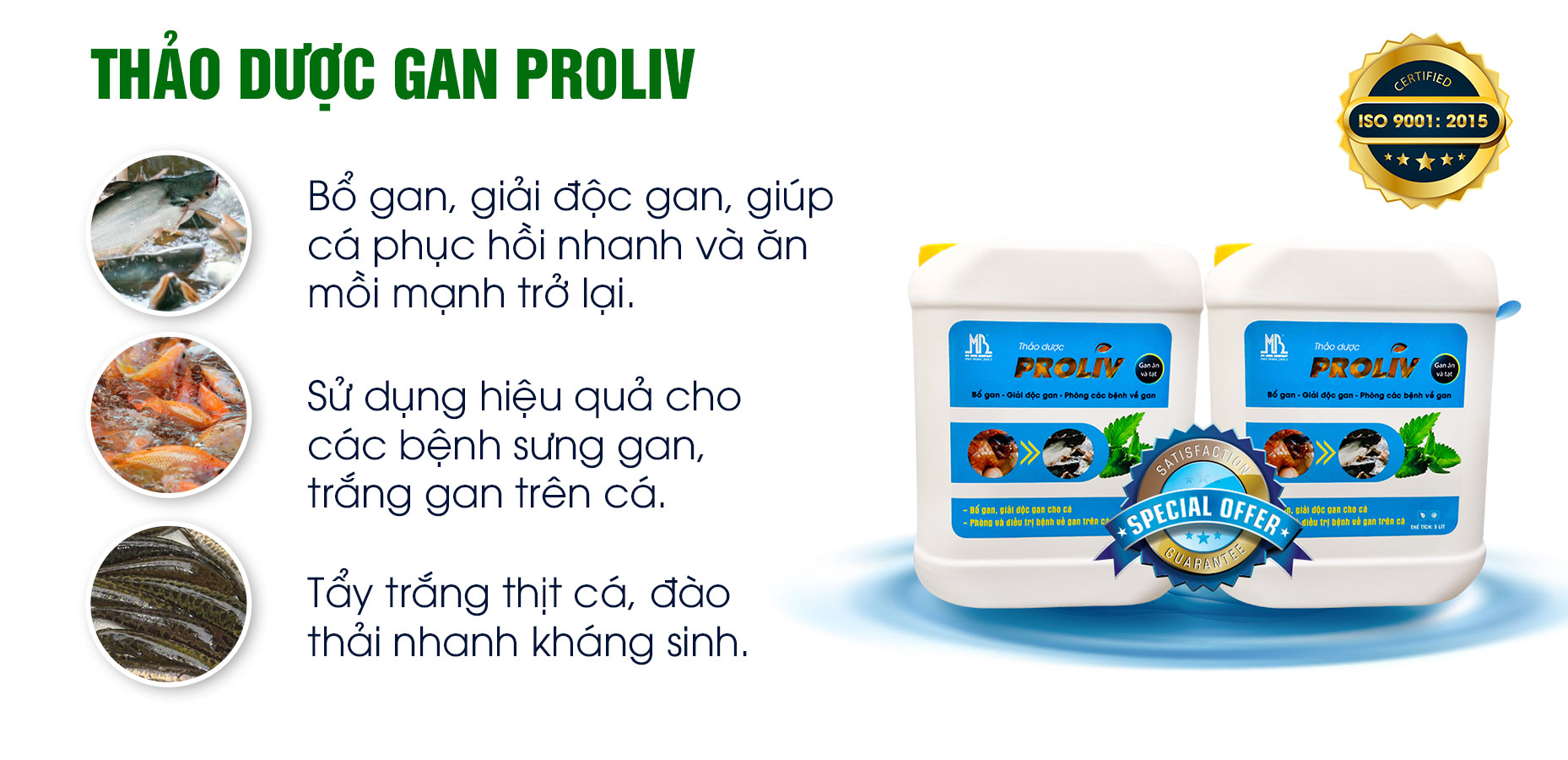 - Bổ sung thảo dược gan PROLIV, tăng cường chức năng gan, hạn chế các bệnh về gan cho cá trong suốt vụ nuôi
