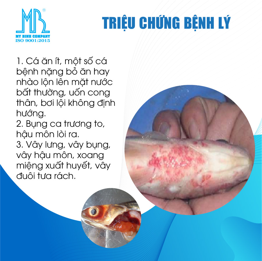- Xuất huyết ở các vây: Vây lưng, vây bụng, vây hậu môn, và xoang miệng có hiện tượng xuất huyết, vây đuôi tưa rách.