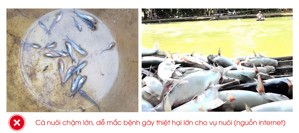 - Cá yếu, dễ bệnh, tỷ lệ hao hụt cao, nuôi hoài không đạt.