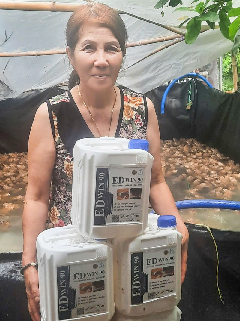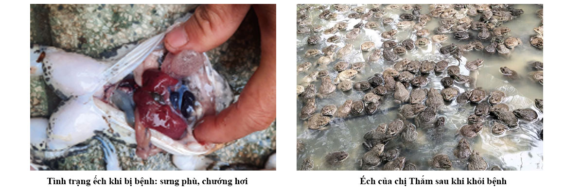 Khách hàng Chị Thắm - Ao nuôi ếch ở Bến Tre đã sử dụng ED WIN 90 điều trị hiệu quả bệnh sưng phù trên ếch