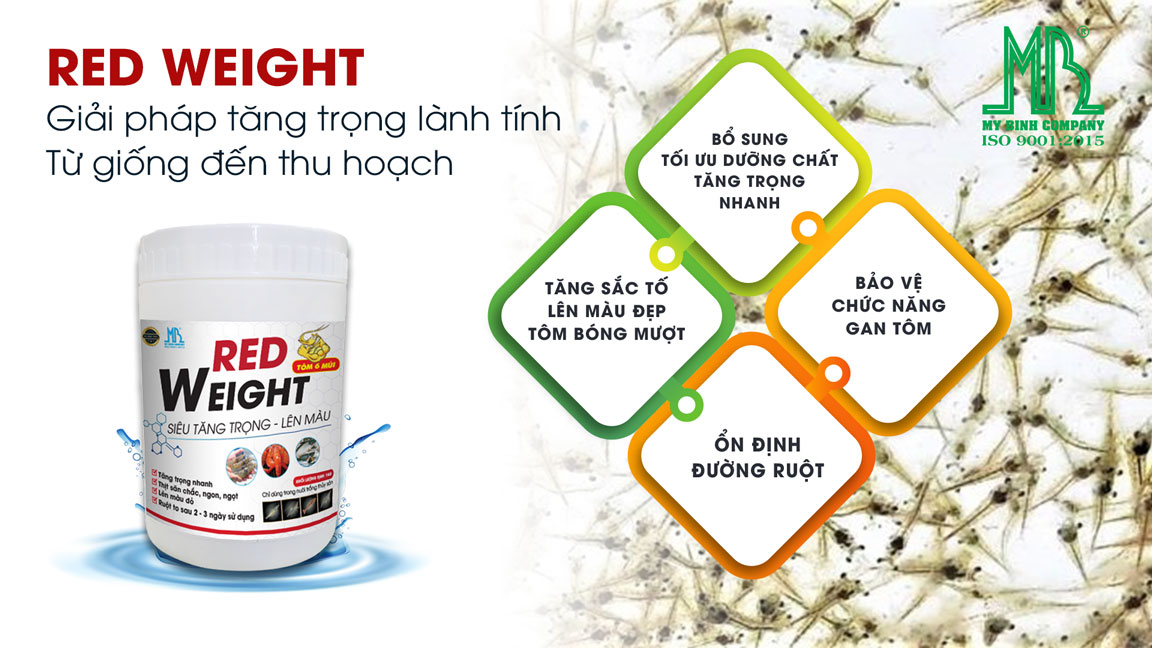 RED WEIGHT không chỉ là sản phẩm, mà là cam kết của Mỹ Bình trong việc đồng hành cùng bà con nuôi tôm. Không lo tác dụng phụ, không hại gan, không làm hư ruột – chỉ có tôm khỏe, mau lớn, giá trị cao.
