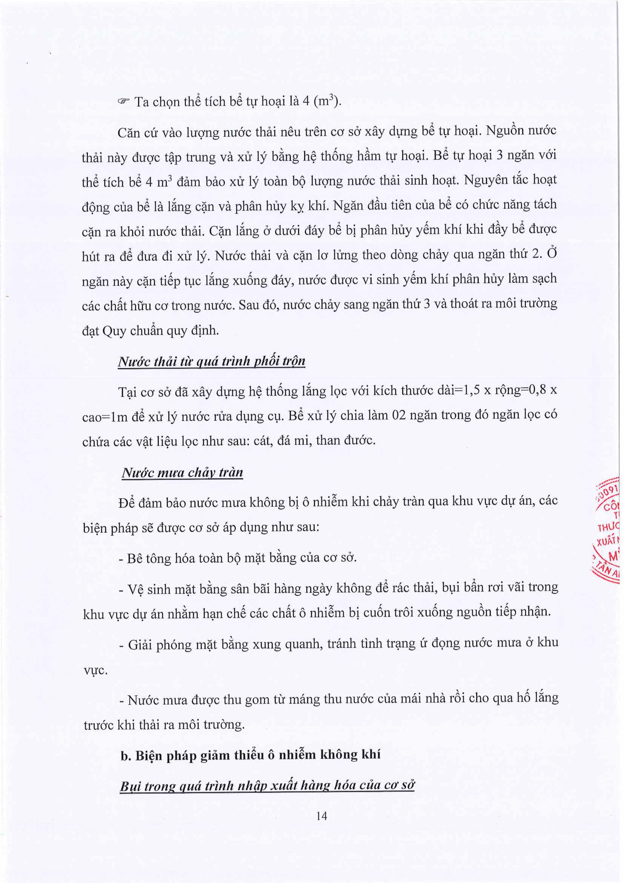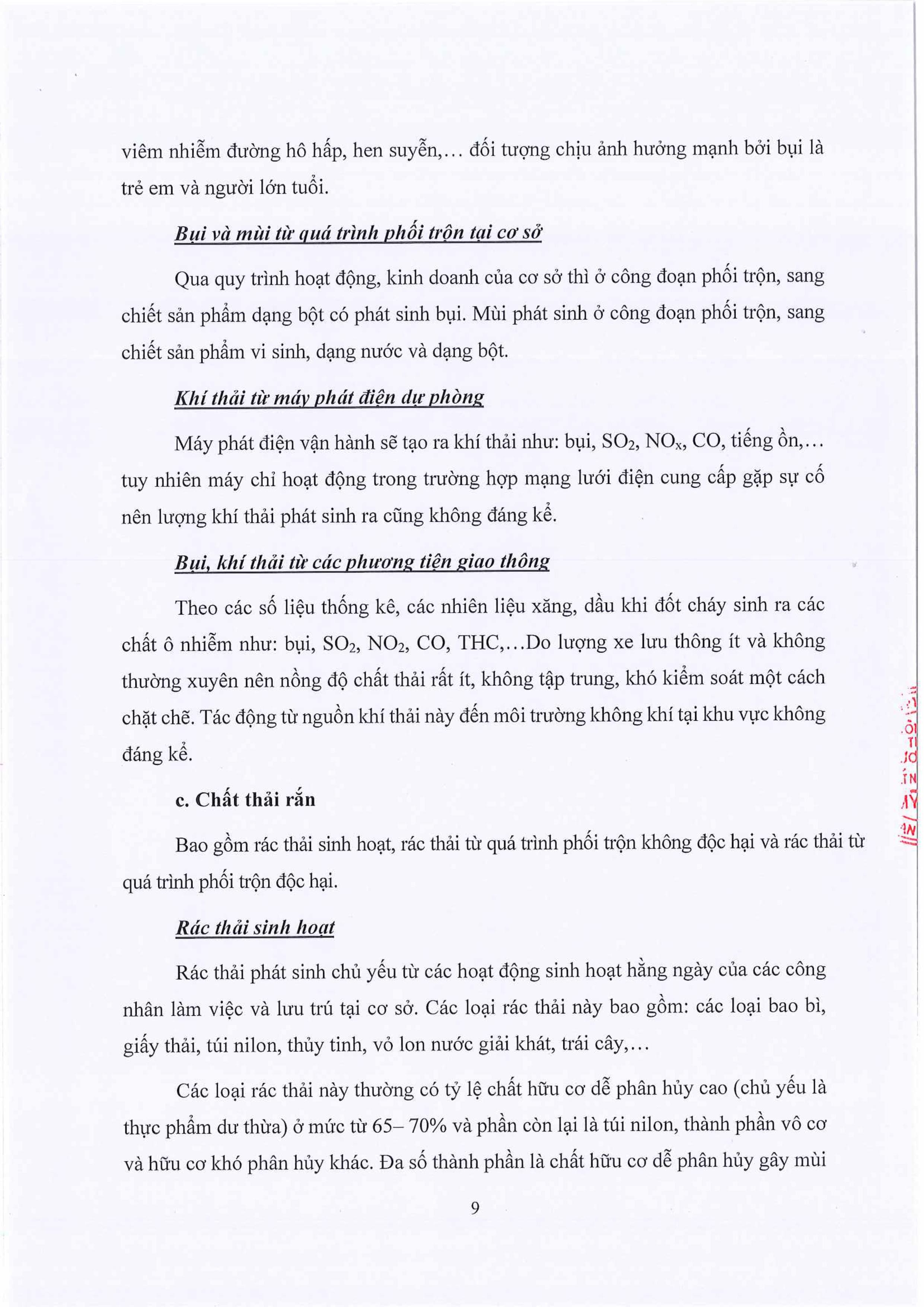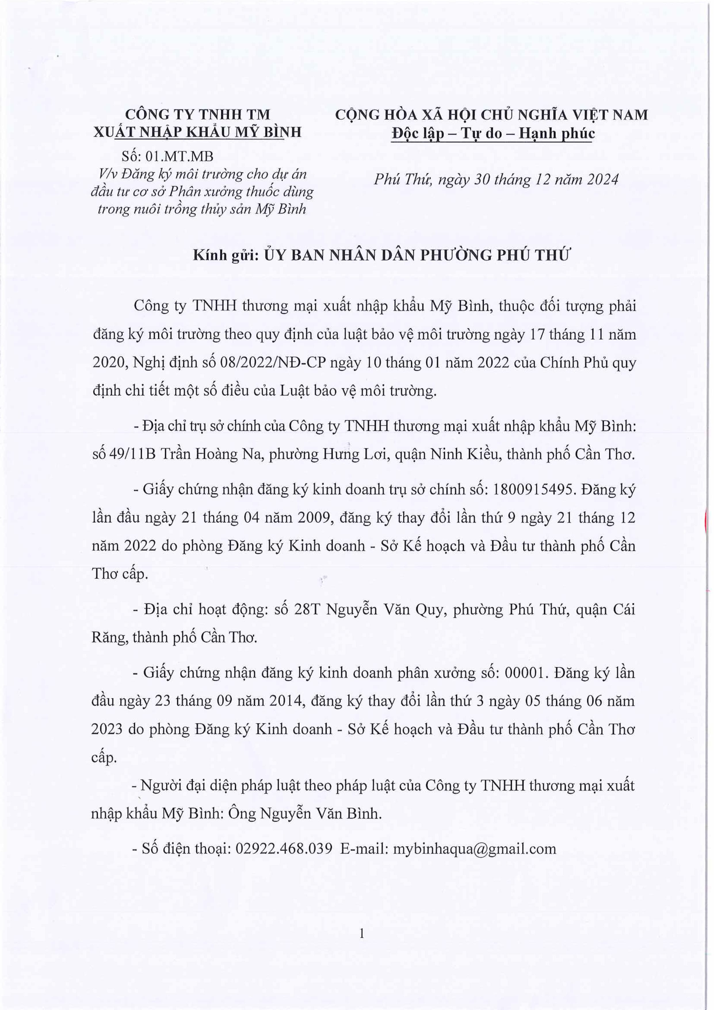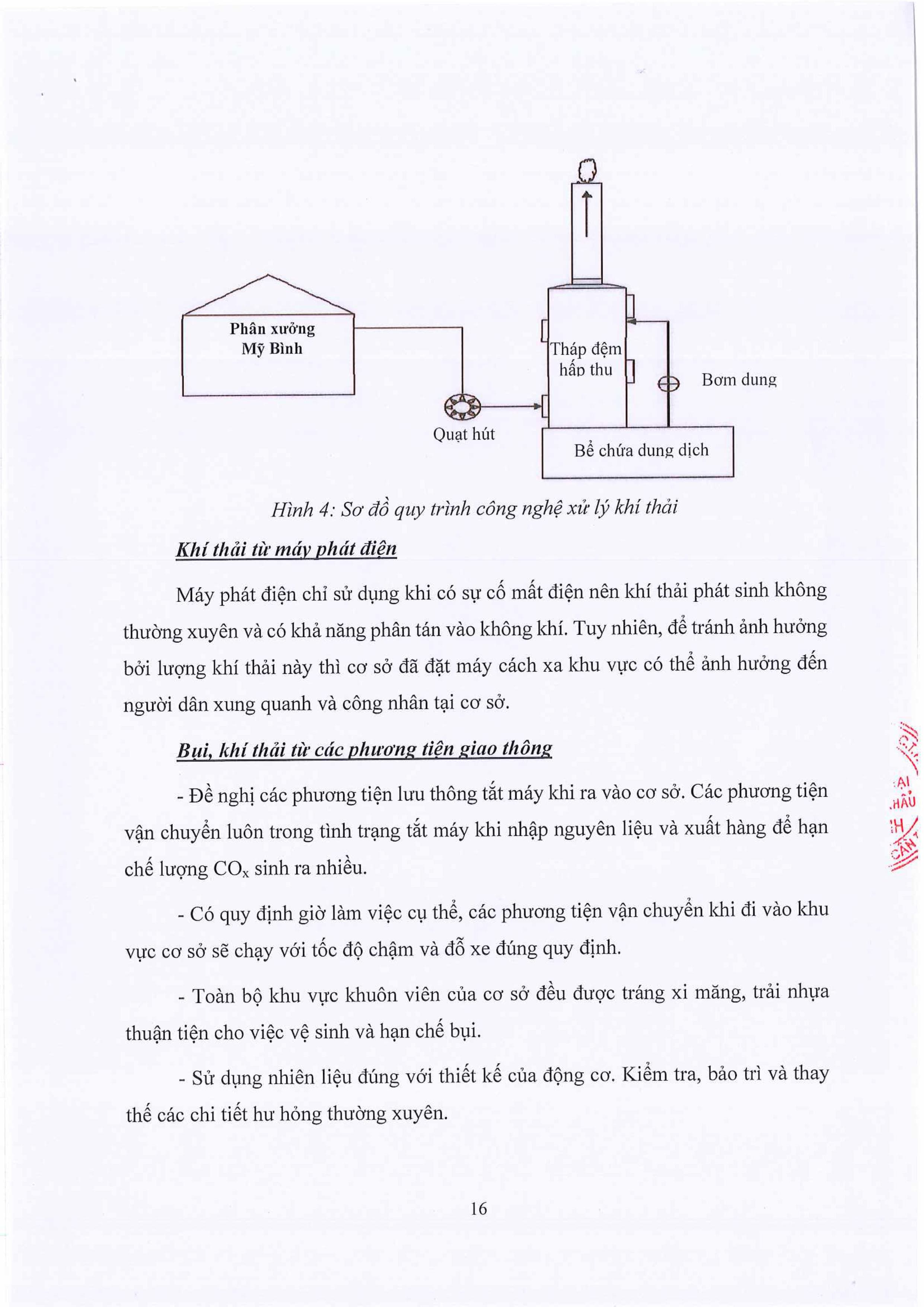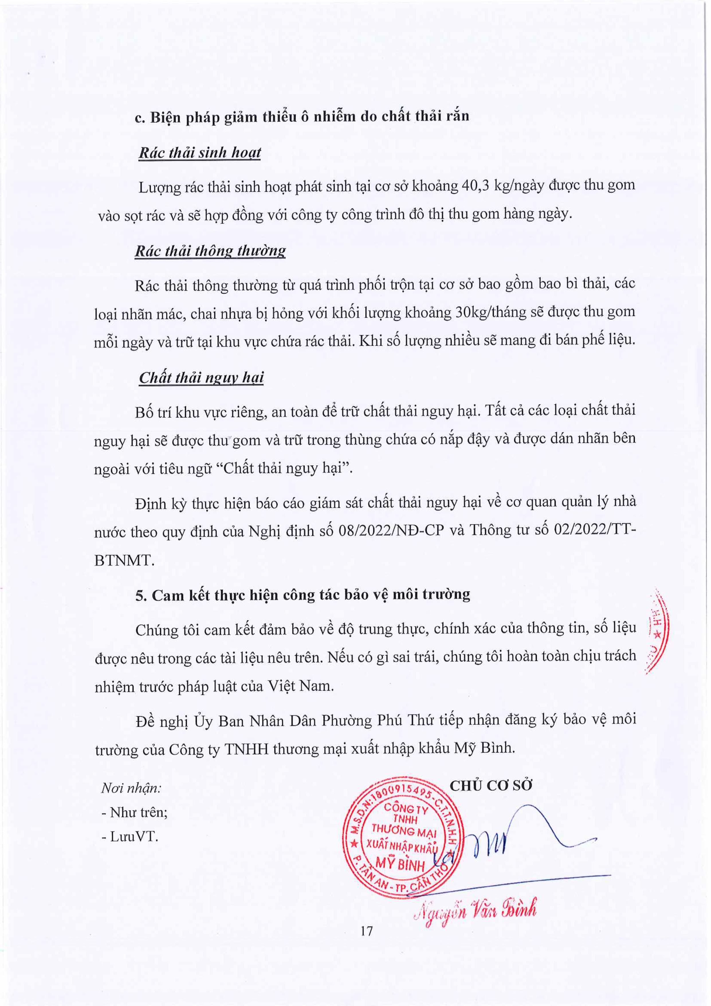 Bản cam kết bảo vệ môi trường _ Công ty Mỹ Bình