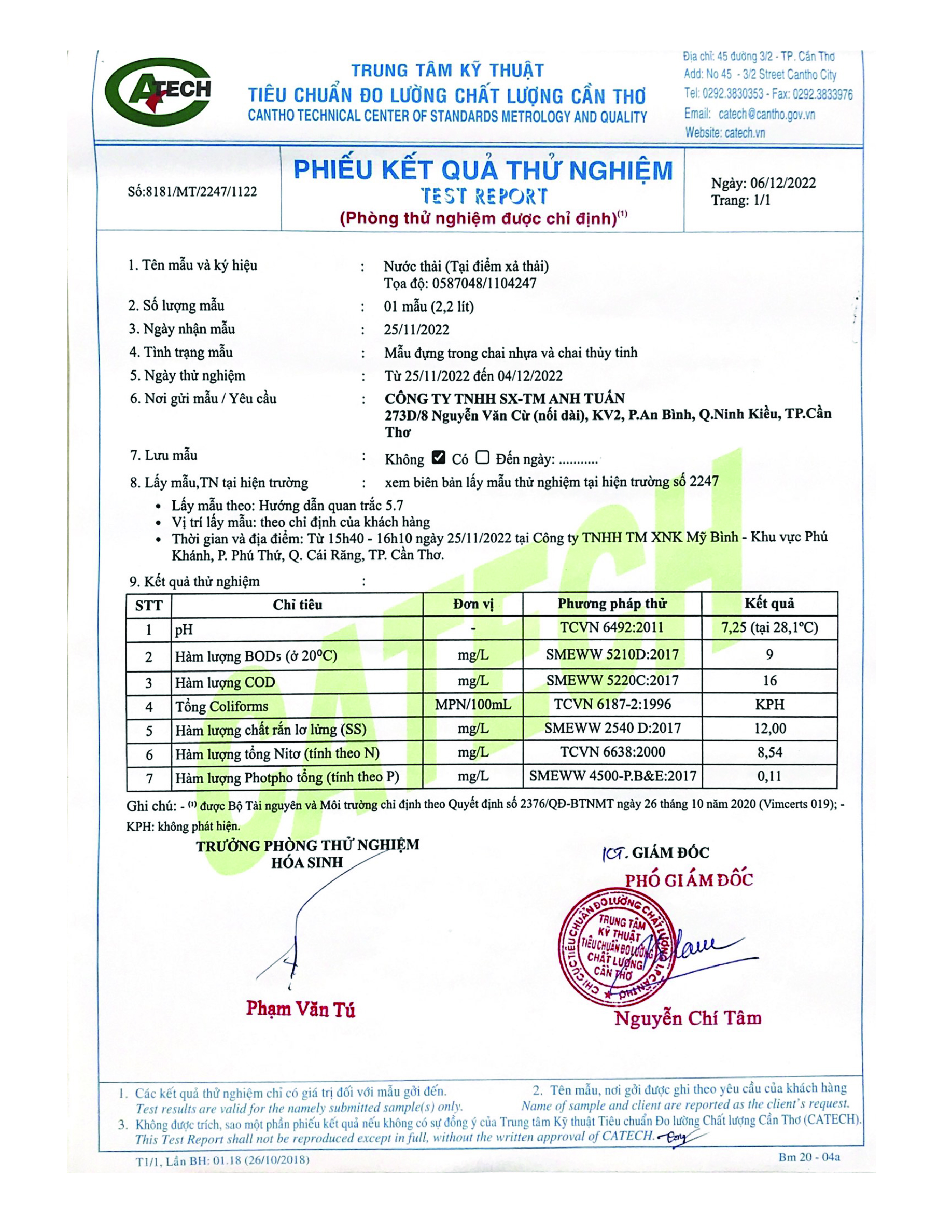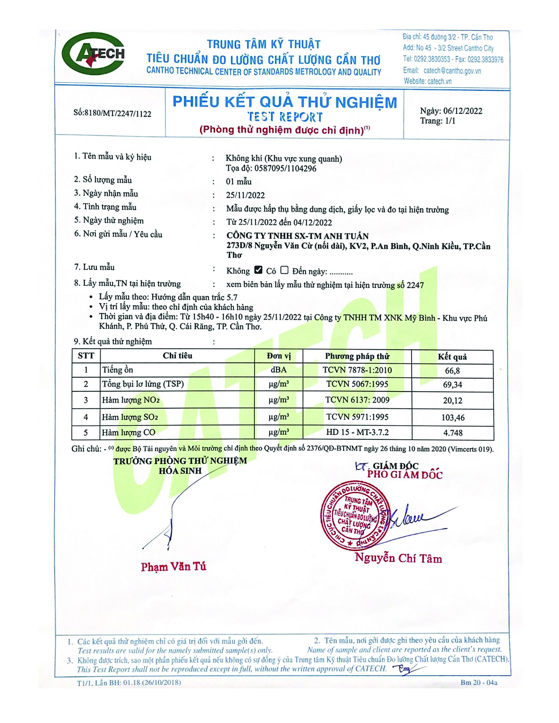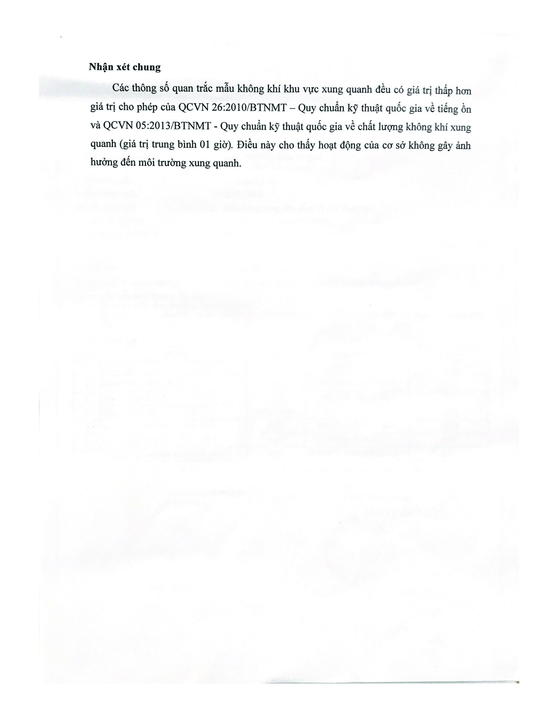 Nhận xét đánh giá kết quả quan trắc Công Ty TNHH TM XNK Mỹ Bình đợt 2.2022